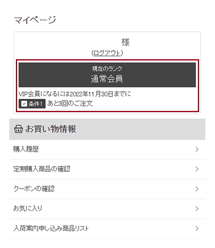 「通常会員」「VIP会員」いずれかのステータスを確認いただけます。